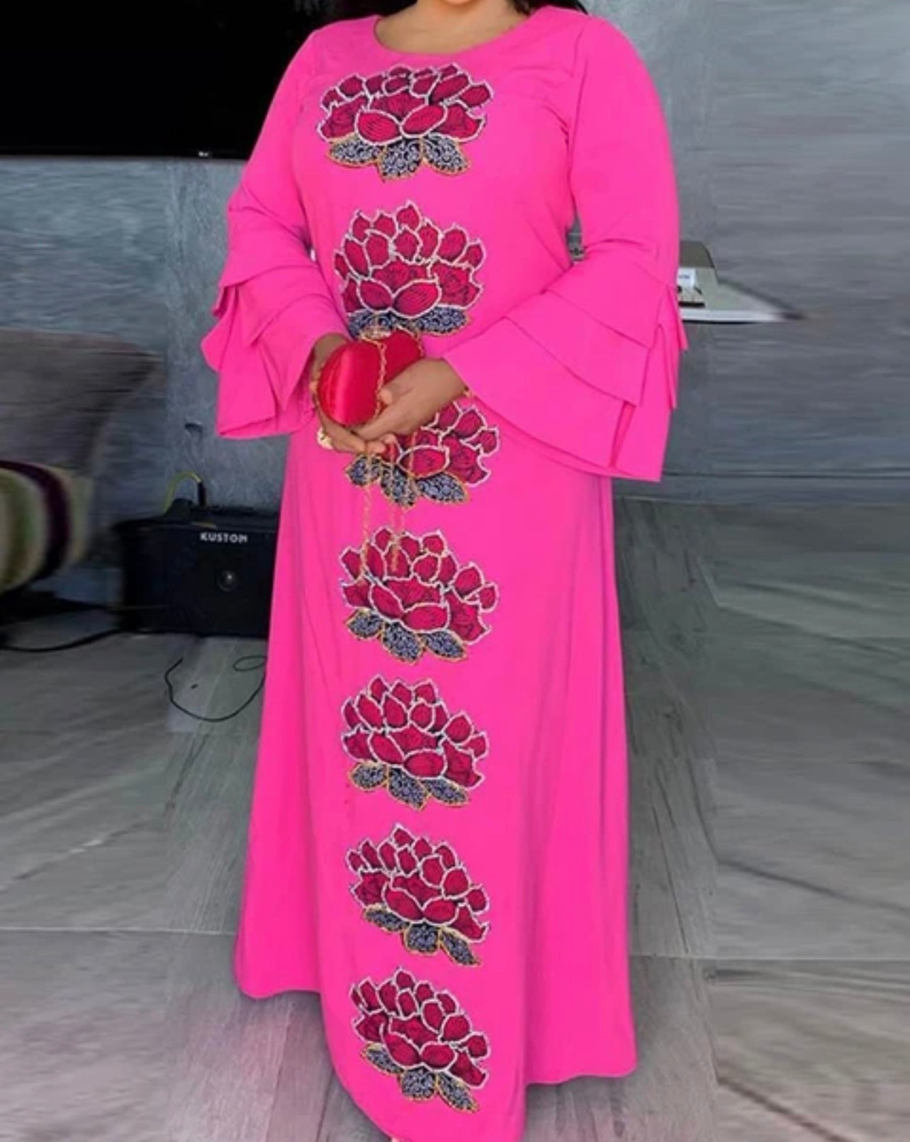Fuschia Pink Large Floral Embroidered Appliqué Abaya Dress
