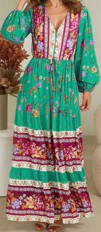 As mentioned previously, bohemian fashion was developed to promote femininity in dress and to combine coastal, rustic, vintage and ethnic styles. Of all our boho dresses, this one most strongly links to the vintage and ethnic roots of the style. The combination of maroon and emerald green speaks to a bygone era and the mixed floral patterns certainly nod to a variety of ethnicities and places. This is a dreamy dress that embodies beautiful places and nostalgic romance.