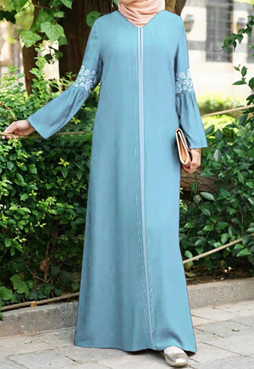Light-Weight Sky Blue Abaya with Embroidery on Sleeve