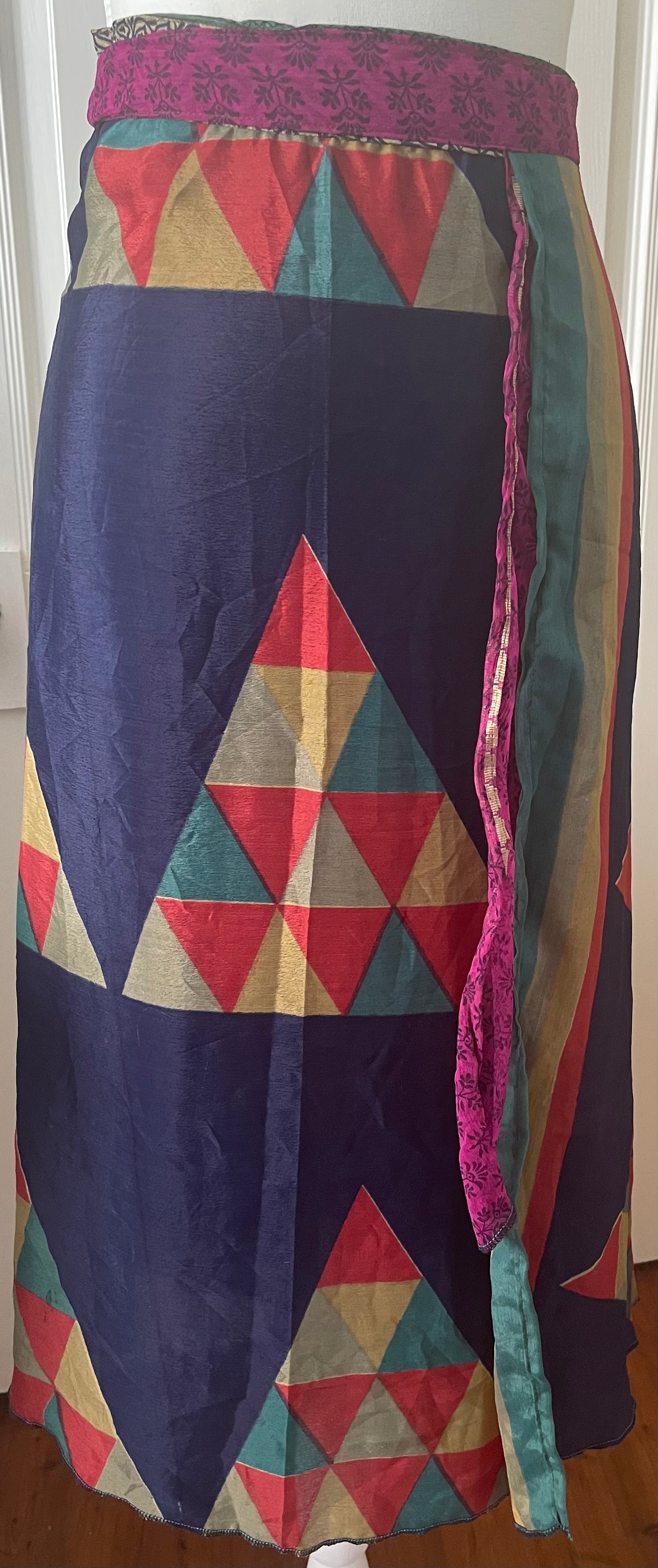 Sari Silk Double Sided Wrapper Skirt - Navy Blue and Pink